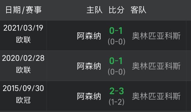 数据显示,阿森纳近3场欧战对阵奥林匹亚科斯,已经遭遇3连败。